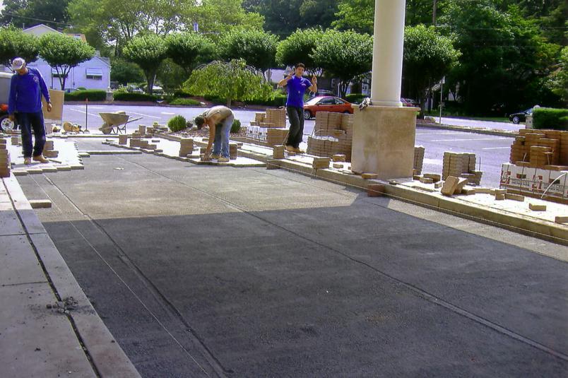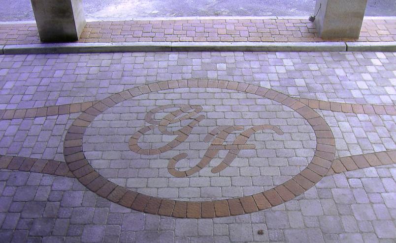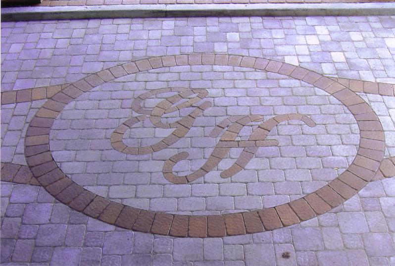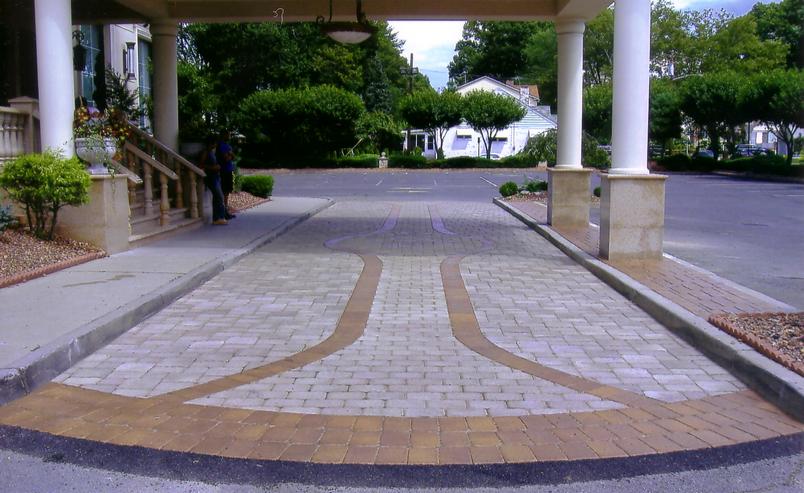 Services Provided - Vallet Area - Custum Script Inlay - Mixed Herringbone Paver Pattern - Soldier Course Edging - Landscaping